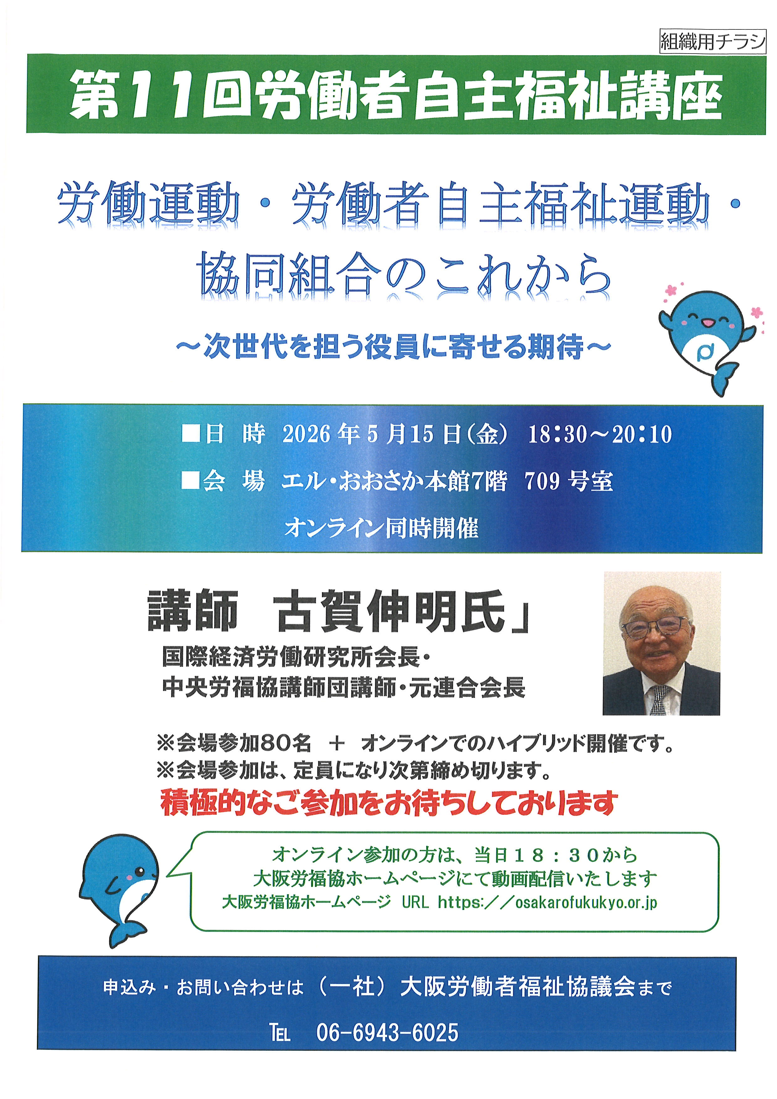 大阪労働者福祉協議会は、労働者自主福祉運動の発展・労働者自主福祉運動の人材を育成を目的に